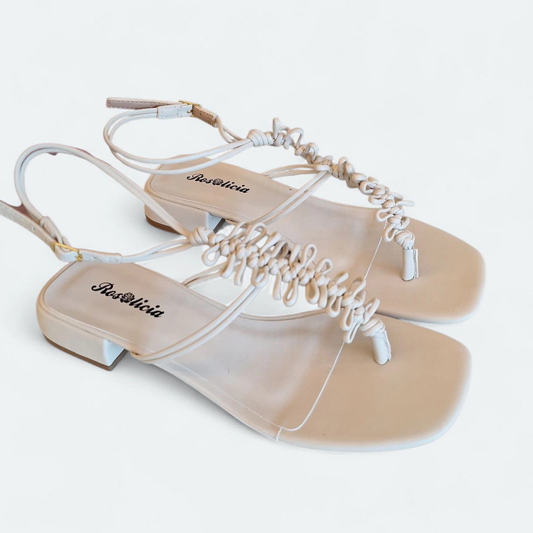 SANDÁLIA OFF-WHITE COM DETALHE EM NÓS – MODERNA E DELICADA, COM DESIGN MINIMALISTA E TIRAS FINAS QUE VALORIZAM OS PÉS. CONFORTO E ELEGÂNCIA EM UMA PEÇA VERSÁTIL PARA DIVERSAS OCASIÕES.